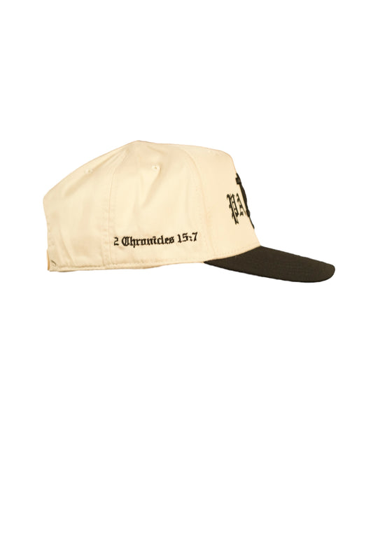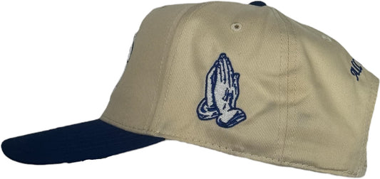 5 Panel Mid Profile Baseball Cap natural cream and royal blue color